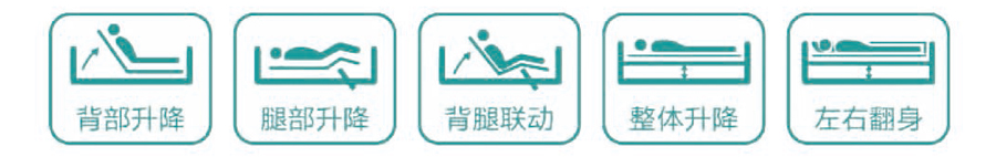 ○ 能隨意調(diào)整背部、腿部、床體升降、左右翻身。